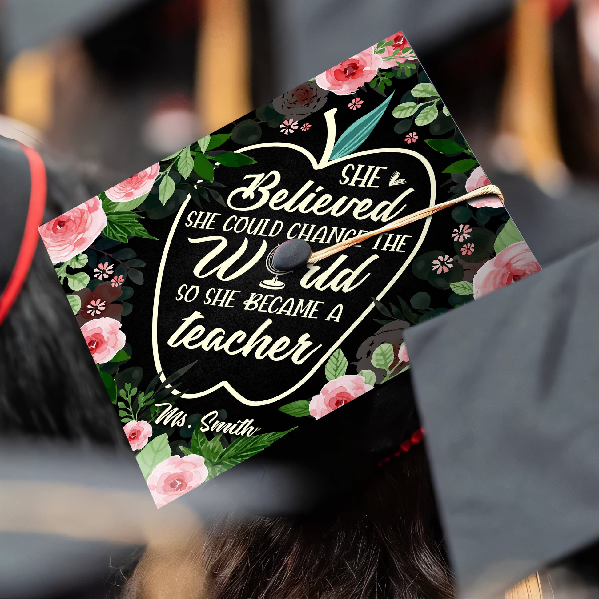Customized Future Teacher Graduation Cap Topper, She Believed She Could Change The World