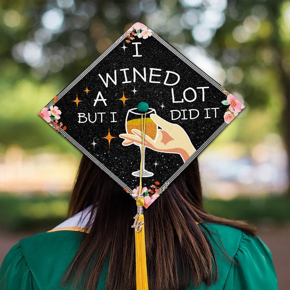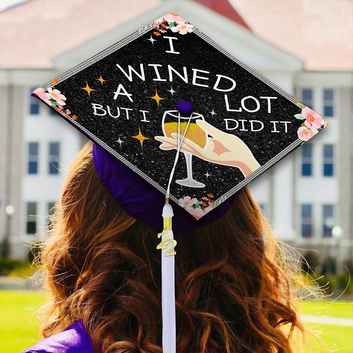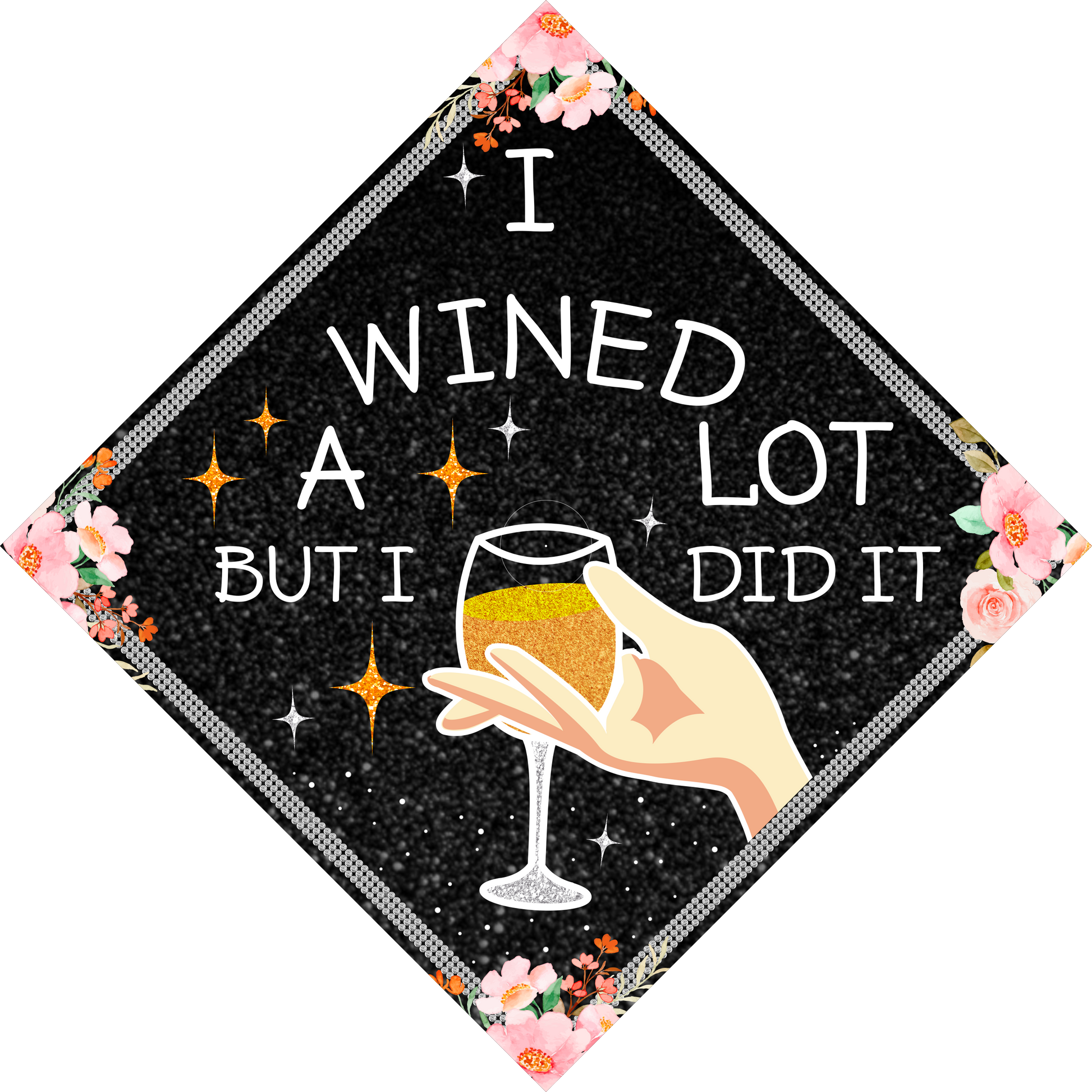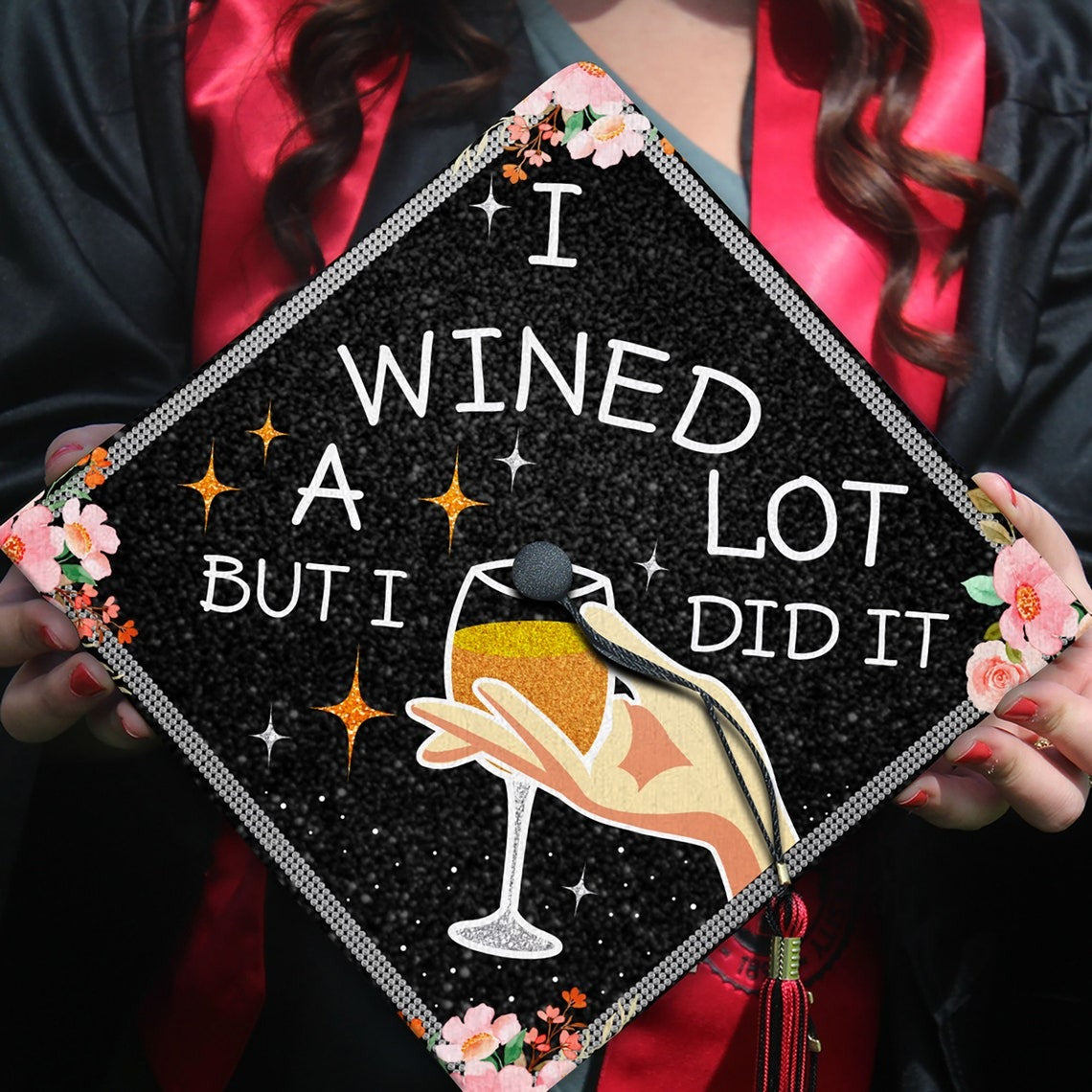 I Wined A Lot...But I Did It Graduation Cap Decoration, Gifts for Black Queen, Class of 2024