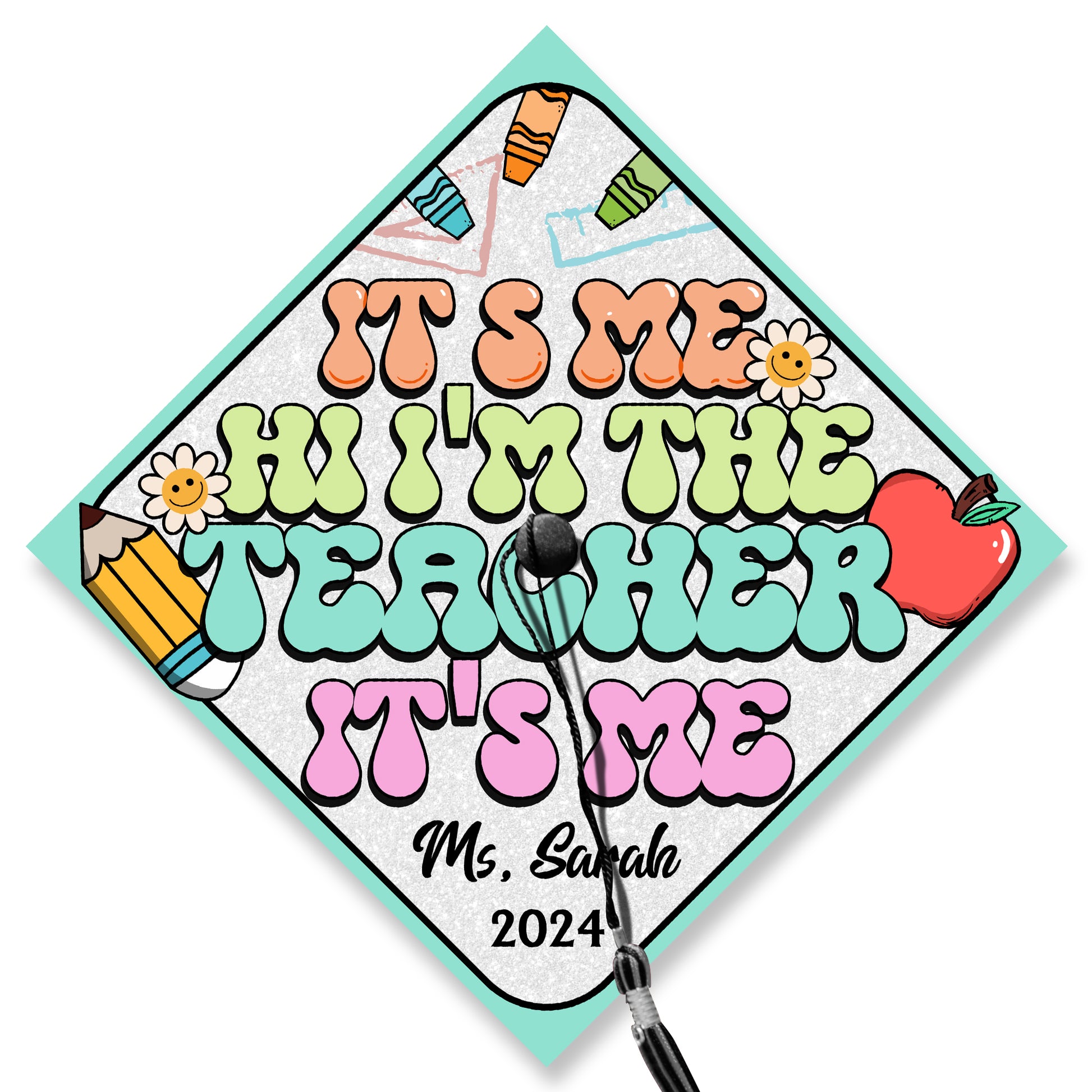 Its Me Hi Im the Teacher Printed Graduation Cap Topper, Customized Future Teacher Grad Cap Decoration