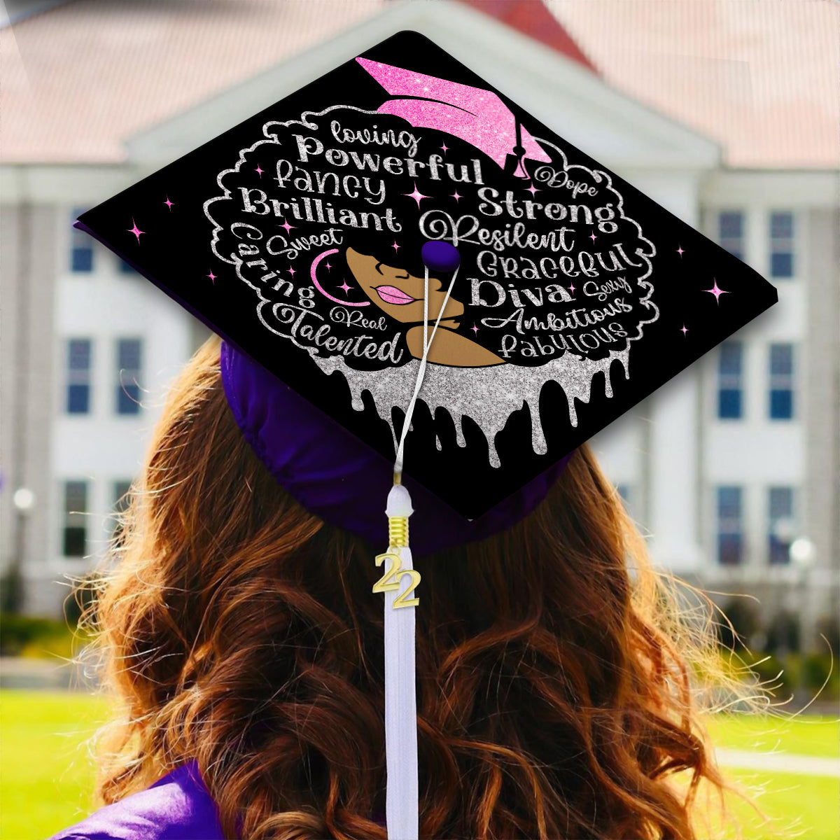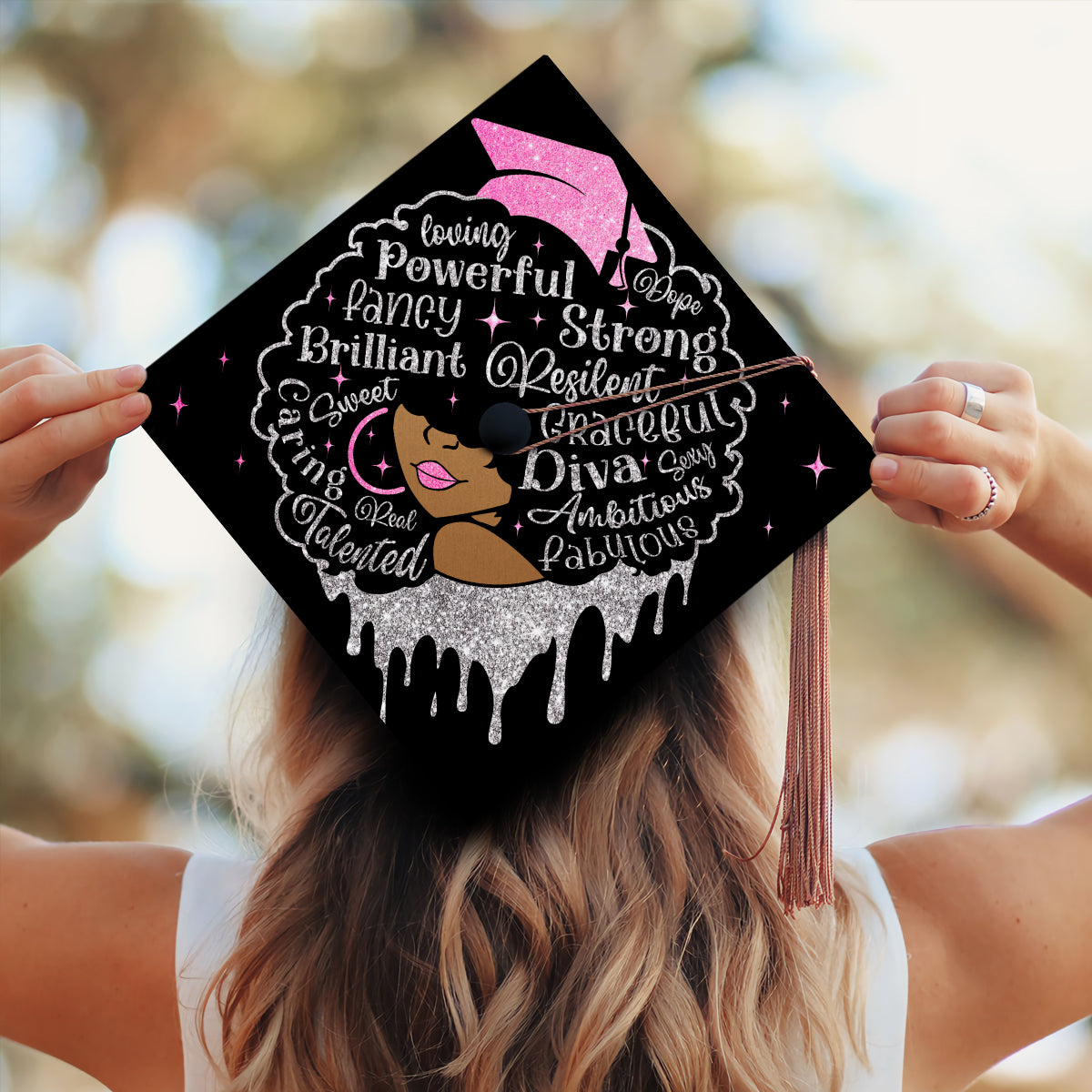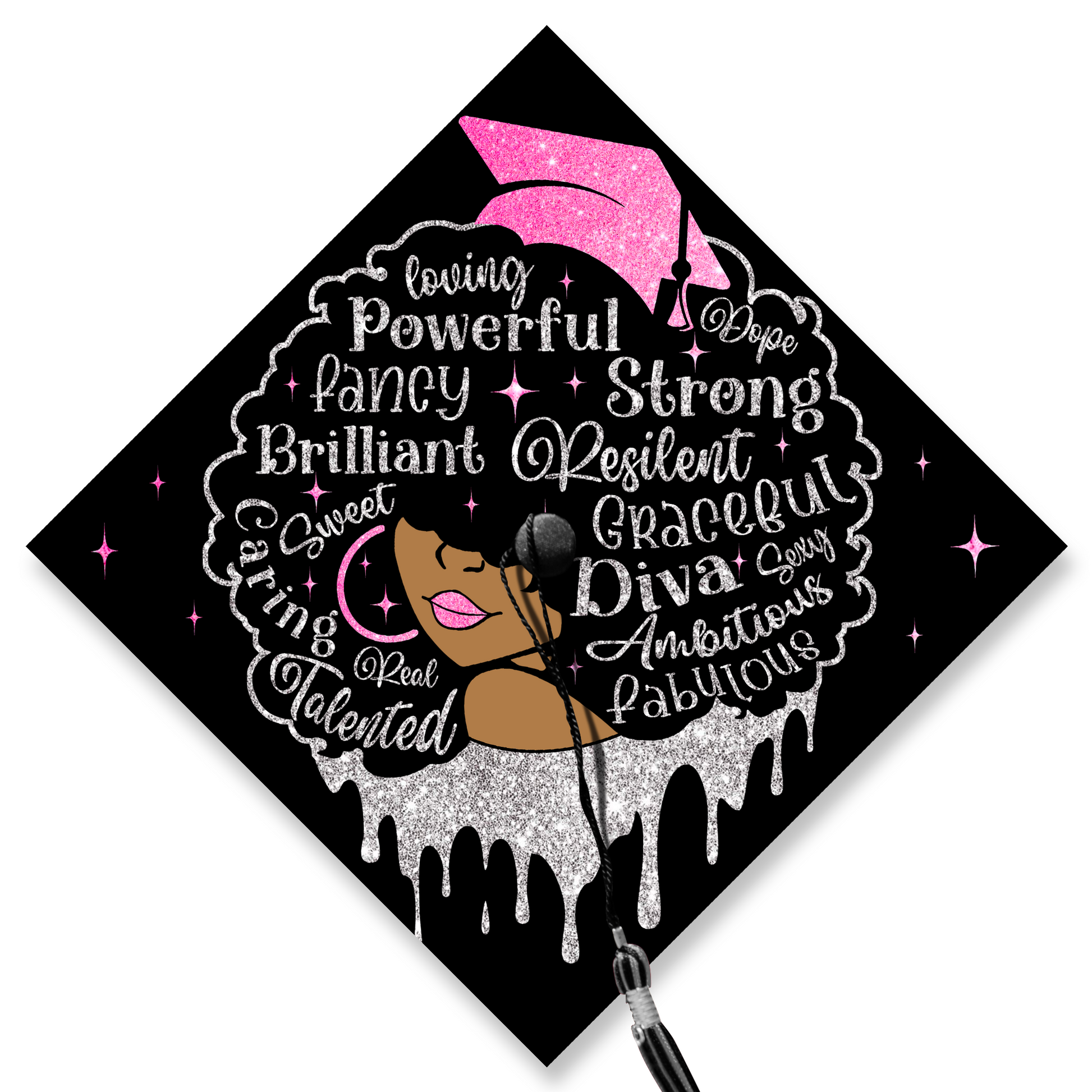 Powerful Strong Girl Graduation Cap Topper, Black Queen Grad Cap Topper, Class of 2024